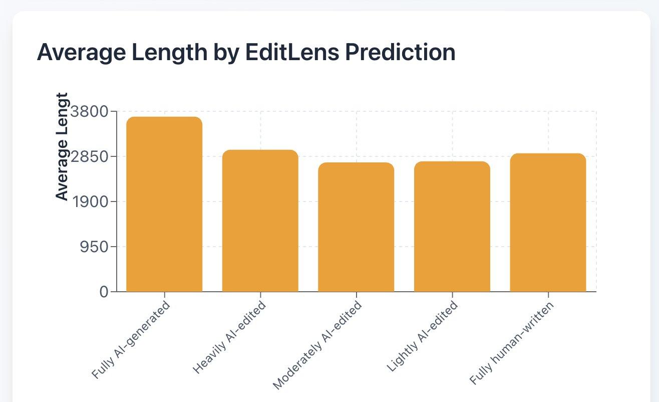 EditLens is currently only available to customers in our private beta, but will become publicly available in early December. We will have more to say on this model in the coming weeks, but in our research preprint, we describe its performance as state-of-the-art in co-authored text generation, and on internal benchmarks, it has a similar accuracy to our current model when evaluated as a binary classifier, and an exceptionally low false positive rate of 1 in 10,000 on fully human-written text.